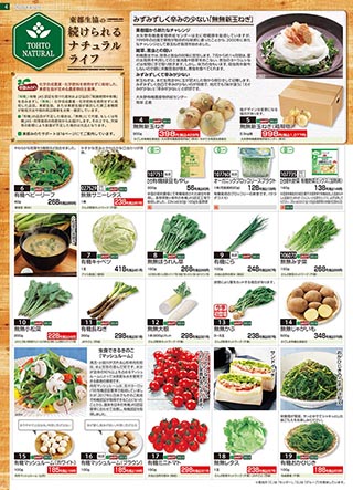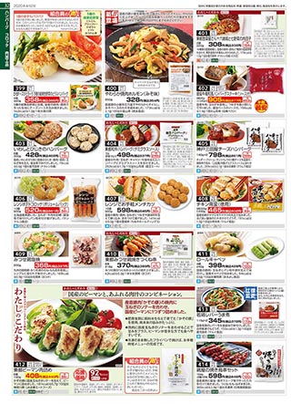 毎週発行メインカタログです。幅広い年齢層の方を対象に、1週間に約900種類の青果・食品と約400種類の雑貨をご案内。