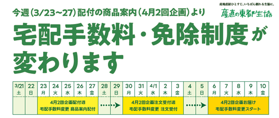 ご案内チラシ【宅配手数料・手数料免除制度が変わります】を、以下の日程で配付しますのでお知らせします。