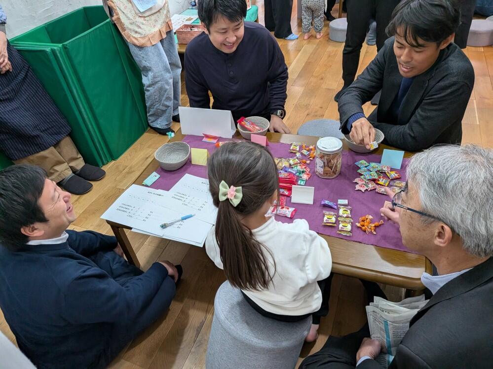 経済同友会の皆さんは2組に分かれ、同日ふらっと・とーとで開催されたイベントに来場した親子や子どもたちと交流。一緒に駄菓子の売り買い体験などを行いました。