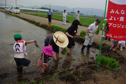 「私も家族も田植えは初めての経験で、田んぼに初めて入ったあの感触は忘れられません。5歳の娘は“とても楽しかった”ととても喜んでおりました。ご好意で田植え機にものせていただいて忘れられない思い出になりました。食糧の自給の問題も、産地に伺って、お話しを聞いて、皆様の地道な取り組みを知りました。自分たちにできることは何か、消費者としてできることを一つ一つ考えていきたいと思います。」