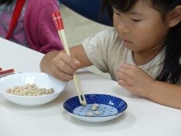 20秒間で大豆を箸で何個つかめるか挑戦 |