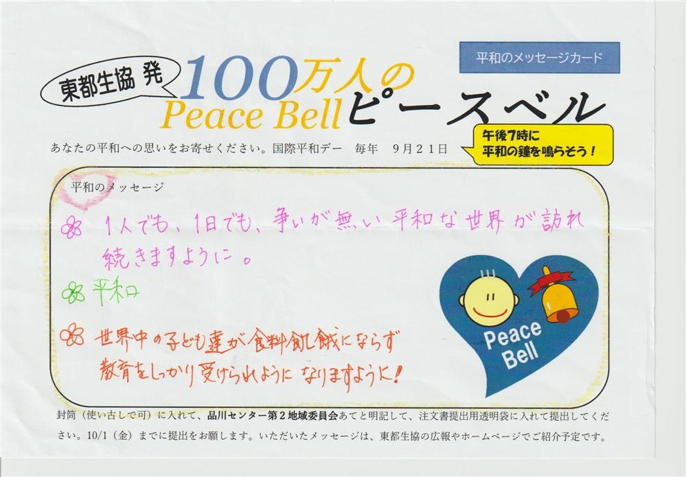 - 平和な生活は尊いものだと感じています。「平和なくして生協なし」という言葉が胸に響く現代の状況の中で自分は何をできるかを考えたいと思います。