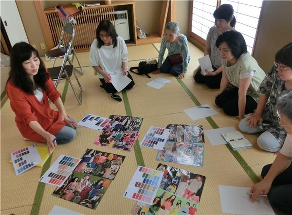 印象を左右する一番の要素は色。肌の色や目の色が一人ひとり違うように、似合う色も人によって違うことをカラーチャートを使って学習しました。