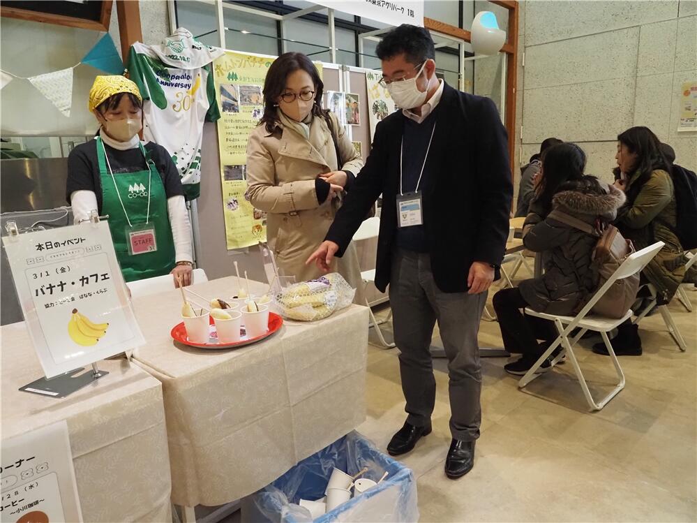 50周年の取り組みに関連した試食コーナーでは、50周年開発商品の「河内晩柑やわらかドライフルーツ(熊本県産)」を配布。試食した来場者からは「程よい酸味と香り、独特な食感でおいしい」と好評でした。今回は試食のみだったため「販売していないのは残念」との声も多く頂きました。