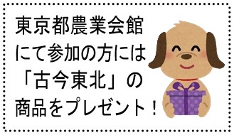 - ①東京都農業会館 3階会議室 (新宿駅南口 徒歩4分) ②オンライン(Zoom使用) ※オンラインの方は午後3時30分頃の講演まで