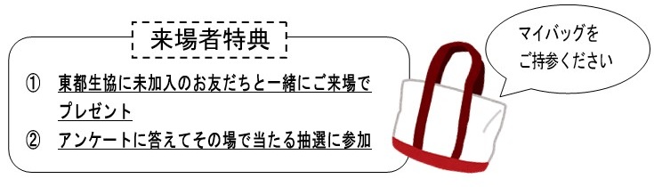 東都生協のことをもっと知りたい方、東都生協を利用して間もない方、お友だちを誘ってのご来場をお待ちしています。