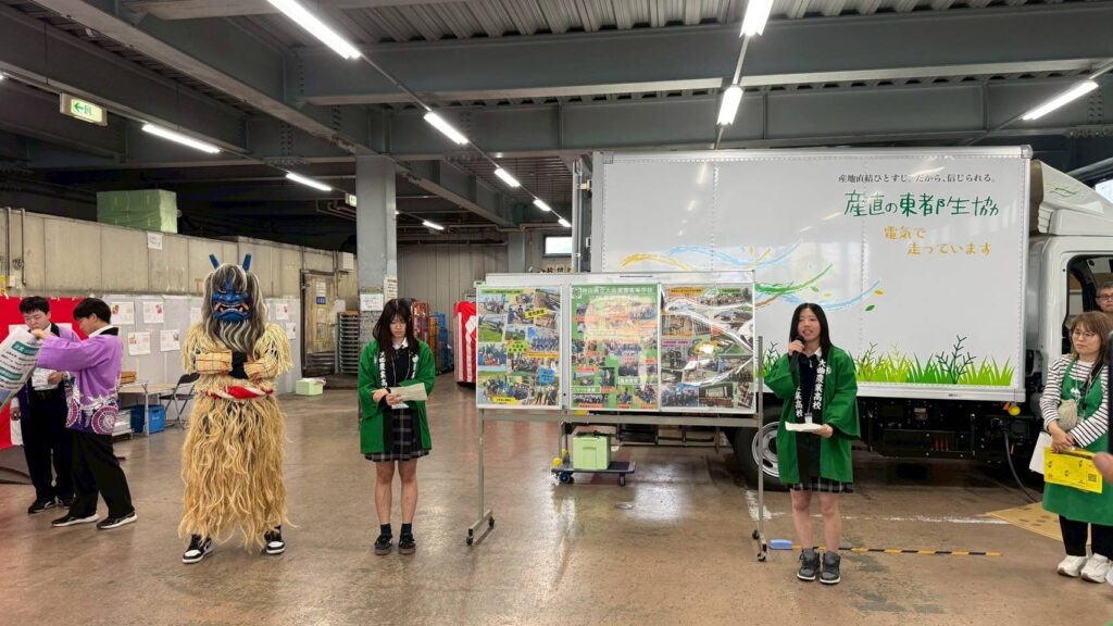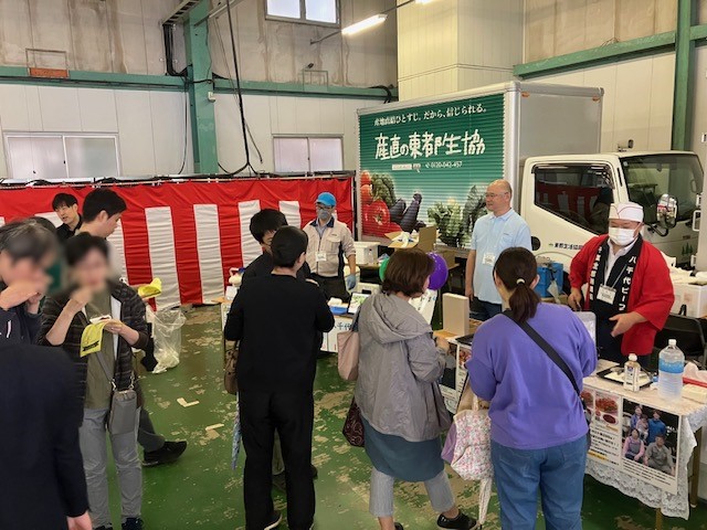 産地・メーカーなど22団体の出席があり、直接交流する良い機会となりました。試食や販売だけでなく、産地・メーカーのお手伝いや疑似配達を子どもたちが楽しそうに体験し、会場には笑顔が溢れていました。