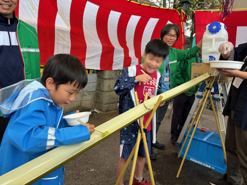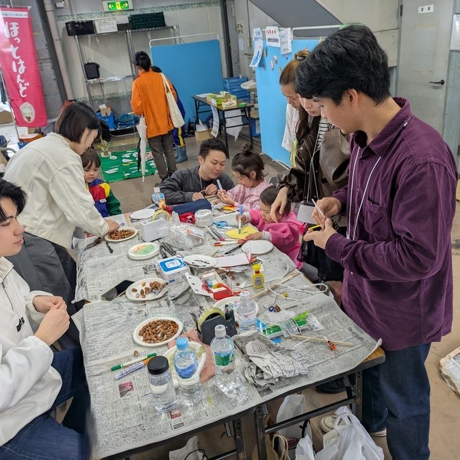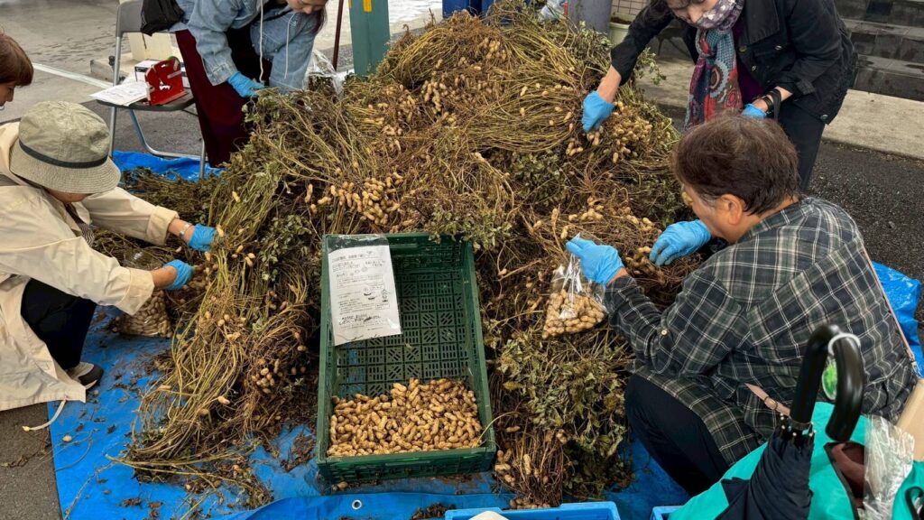 雨の中、200名の来場があり産地・メーカーなど22団体による試食&販売で会場内は盛り上がりました。農業高校生の発表ではアイガモロボを使った米作りの報告をしてくれました。じゃんけん大会やドングリを使ったワークショップ・EVトラックの乗車体験&保冷箱運び体験などの参加体験型の企画があり、中でも落花生の収穫体験が好評で皆が楽しめるイベントになりました。