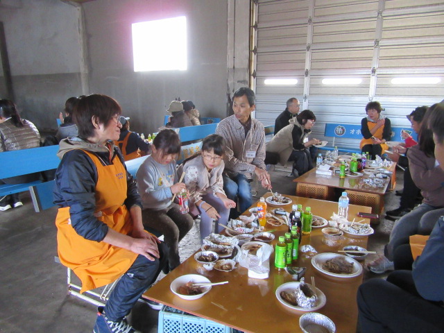 その後昼食は、枝幸漁港の女性部の皆さんを交えてのバーベキューをしながら交流をしました。