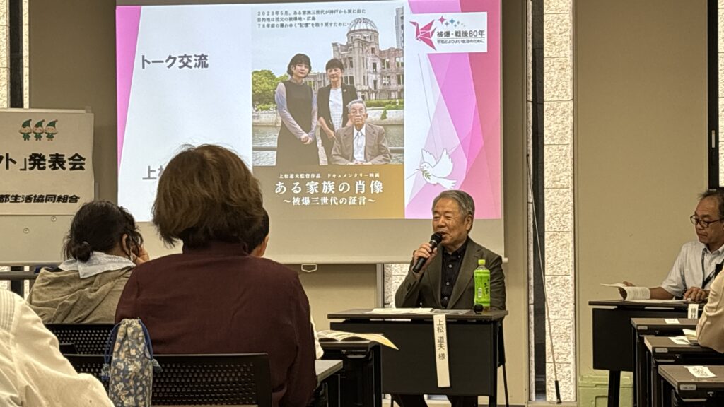 子ども平和新聞発表会と同時開催として実施した上映会は、ドキュメンタリー映画の上映会を約1時間開催、終了後には、監督の上松道夫さんとのトーク交流を実施しました。