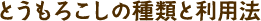 とうもろこしは大別すると、6種類に分けられます。東都生協で扱うとうもろこしはスイートコーンですが、糖度・粒色によってホワイト、バイカラー、イエローに分けられます。
