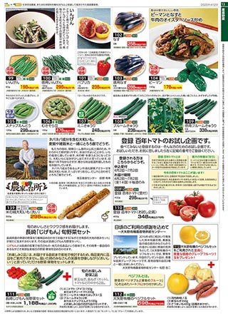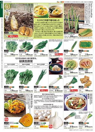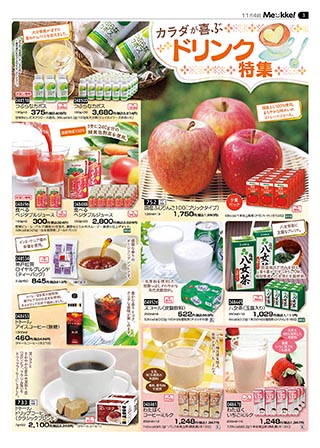毎週発行メインカタログです。幅広い年齢層の方を対象に、1週間に約900種類の青果・食品と約400種類の雑貨をご案内。