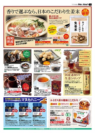 毎週発行地方の名産品、世界の料理、有名店、ホテルブランドなどの商品を集めたチラシです。