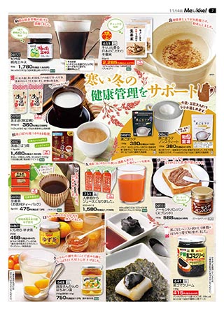 毎週発行歳時など週ごとのテーマに合わせ、商品を集めて掲載したチラシです。