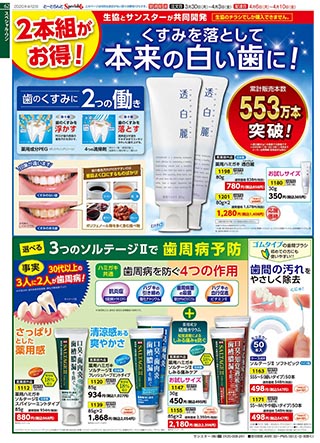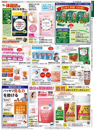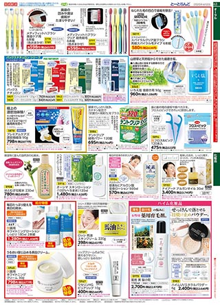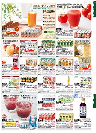 翌週供給衛生・口腔ケア、栄養補助食品や美粧を掲載、毎週4ページでご案内しています。「有機大麦若葉青汁」「密毛ハブラシ」の東都生協オリジナル商品もあります。