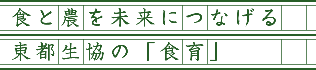 東都生協では「農から学ぶ食育」との考えから、農業の現場や地域の伝統の食文化に触れ、産地・メーカーと共に生きた情報を学ぶ企画を立てています。料理教室ひとつをとっても、それは単においしい料理を学ぶだけではありません。生産現場の事情や食材、表示など、食に関する知識やスキルの向上を心掛けています。 産地とのつながりが強い東都生協だからこそ、実現できた「農から学ぶ食育」。食の安心を次世代に受け継ごうと生産者と共に正面から取り組んでいます。