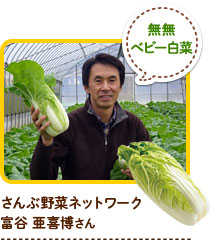 ミニ白菜、にんじん、里いも、大根、ほうれん草など25年前から環境と安全性に配慮した農業を行っています。
