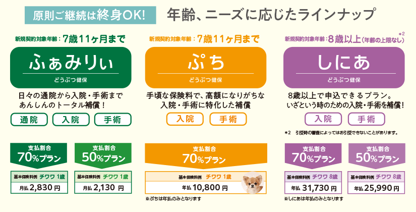 *3 ぷちは窓口精算対象外。病院の窓口で一旦全額をお支払い後、アニコム損保へご請求ください。